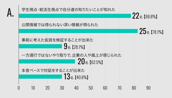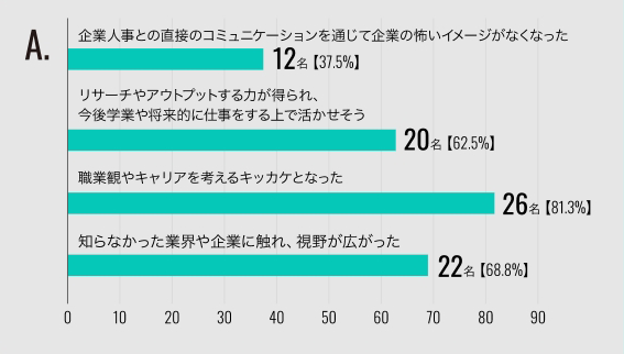 - Q.プロジェクト全体を通じて・また早期に企業と直接接点を 持てたことで、今後皆さんにとってどんな点で 役に立ちそうか(複数回答可)